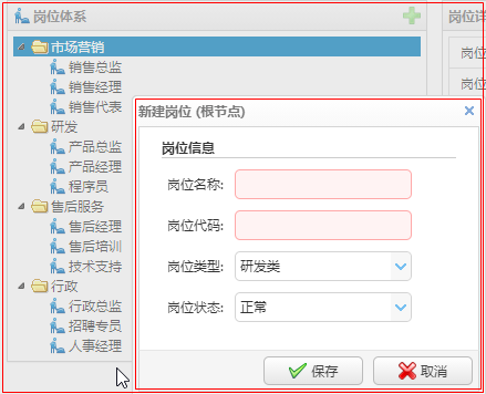 1.新增、修改、删除岗位
