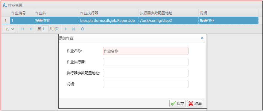点击“+”,输入作业名称,选择作业执行器(作业的具体内容,如果不用系统自带的,可以通过代码实现),填入执行器参数配置地址,保存。