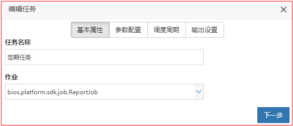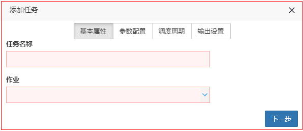 输入基本属性中的任务名称和作业,点击下一步,进入参数配置界面: