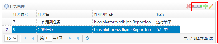 选中任务管理中的某个任务,点击“绿色”按钮,可以启动该任务。点击“红色”按钮,暂停该任务。