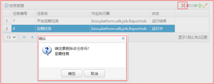 选中任务管理中的某个任务,点击“X”按钮,点击确定,删除此任务;点击取消,终止此操作。