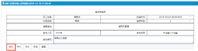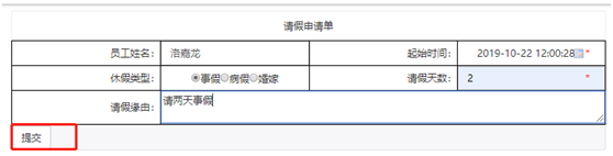 申请人填写请假单,点击提交按钮提交申请。