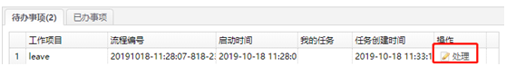 流程bfl文件中设置的审批经理登录后,在首页点击我的事项,待办事项中会有需要处理的事项,点击处理操作。