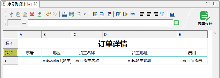 新建报表:报表类型为展现报表,命名为序号列设计.brt。