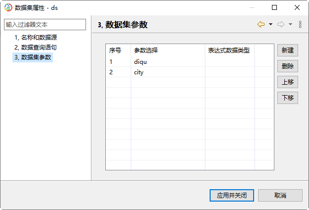ds1:select * from 订单 where 货主地区 =? and 货主城市 in (?)