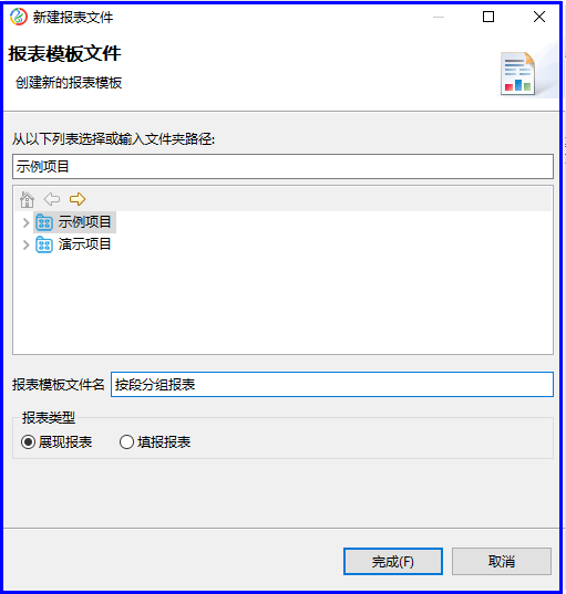 1、在项目视图里右键项目名称选择新建报表,输入“按段分组报表”,点击完成。