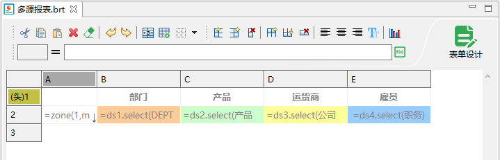 A2单元格中表达式为:=zone(1,max(list(ds1.count(),ds2.count(),ds3.count(),ds4.count()))),扩展方向设置为纵向扩展