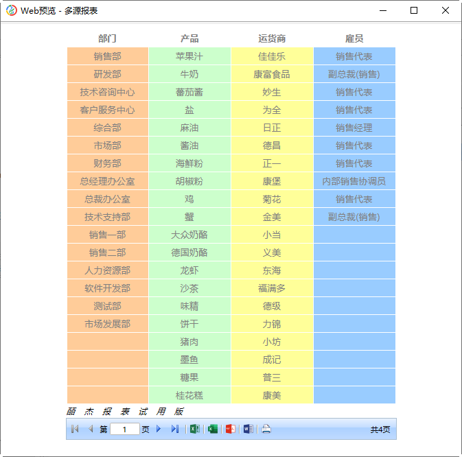 随着业务系统的越来越复杂,数据的来源也日益多样性,因此需要在一张报表中显示的数据来自于多个不同的数据库。作为一款老品牌的专业报表软件,皕杰报表对于需求复杂、计算繁琐、多源分片的报表是小菜一碟,下面就给大家介绍一下皕杰报表如何制作多源报表。本例中报表示例为多源报表.brt。