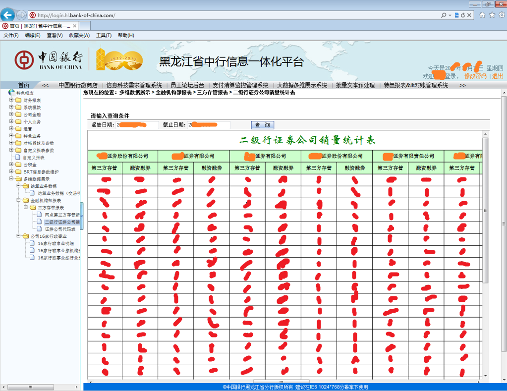 为了转变这种状况,分行开发建立了‘黑龙江省中行信息一体化平台’系统,统一的登录管理,所有行内员工在一体化平台均可使用浏览业务流程说明,信息发布,新闻,媒体,金融市场等相关信息。并将各外围系统,如批量预处理,特色报表&对账管理,大数据多维展示等MIS类系统进行统一接口展示与管理。