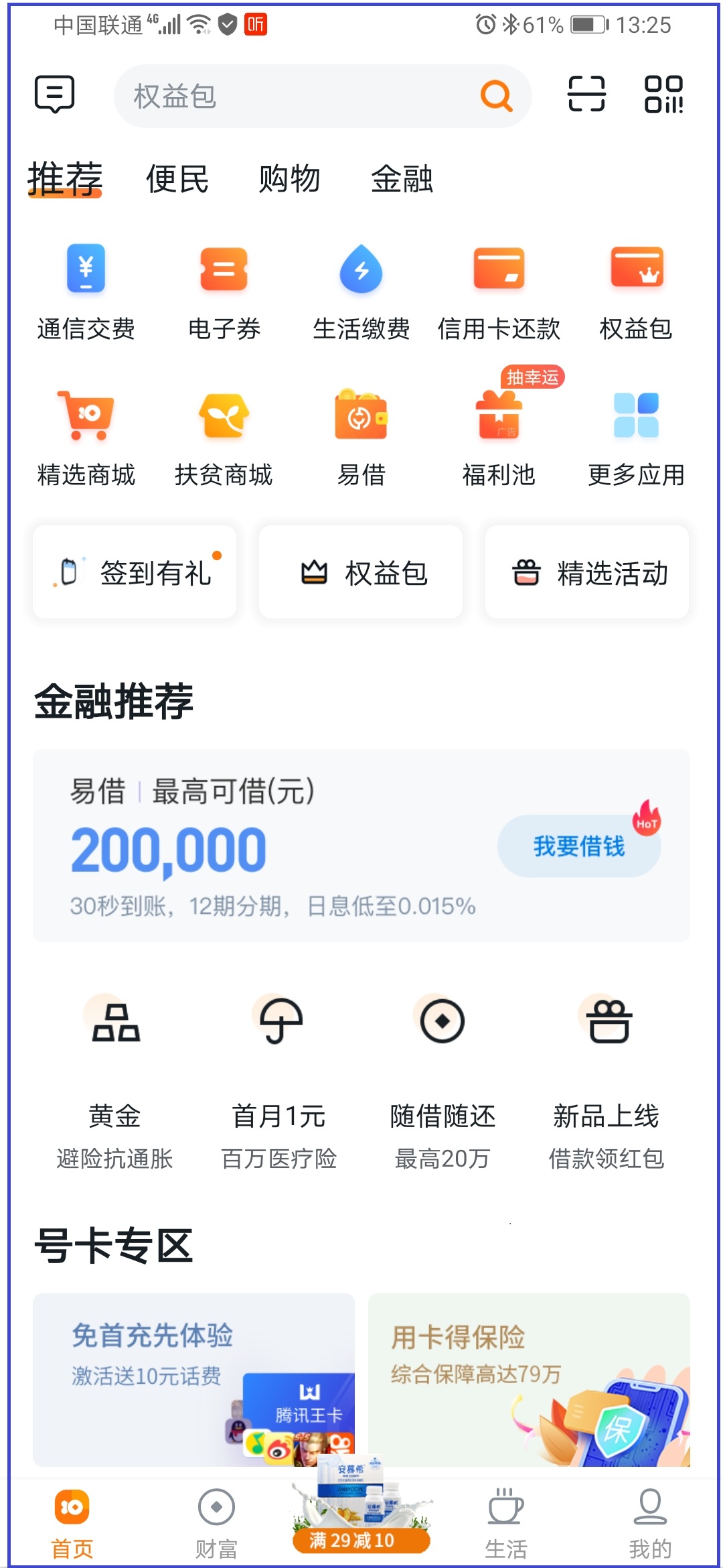 沃钱包客户端是融合了支付、生活服务、政务服务、金融信息服务等多个场景与行业的开放性平台。除提供便捷的支付、转账、收款等基础功能外,还能快速完成充话费、缴水电燃气费,还信用卡、外卖点餐、商城购物、购买火车/汽车/飞机票、电影票等生活服务。联通支付精心打造联通支付日,每月28日,精选服务8.8折优惠。用户不仅能享受消费打折,还能轻松理财,累积信用,享受消费信贷、保险等金融信息服务。