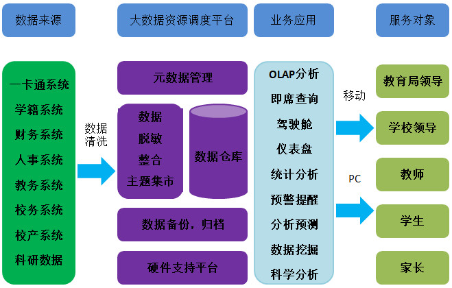 依托皕杰报表的快速展现功能,利用通信技术、互联网技术等可以为各级教育机构提供信息化管理、教育直通车等应用,为中小学提供平安校园、校车监控、平安短信、儿童手机定位、家校通等应用,为高等学校提供手机一卡通、掌上校园、阳光求职易等应用,全面助力我国教育行业信息化水平的提升。