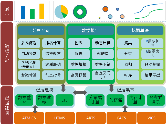 利用皕杰分析(BIOS iLook)探索式即席分析系统对轨道交通运行,地面公交运行,出租车运行,城市路网运行、高速公路运行,普通公路运行,民航客运,铁路客运,省际客运运行,综合枢纽运行,公共自行车与综合交通协调进行分析,为智能调度系统提供调度依据。
